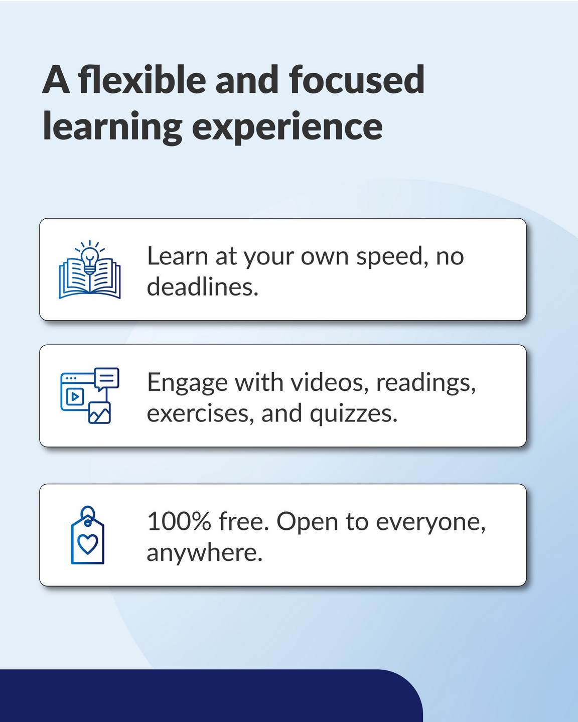 The course is free to take and is built around real-world cases and evidence-informed approaches – with a rich repertoire of curated further resources.