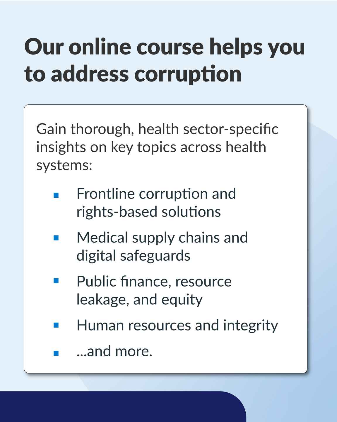 - Follow the money to see how corruption drains resources and blocks access, and gain insights into proven interventions that protect health budgets and boost equity.