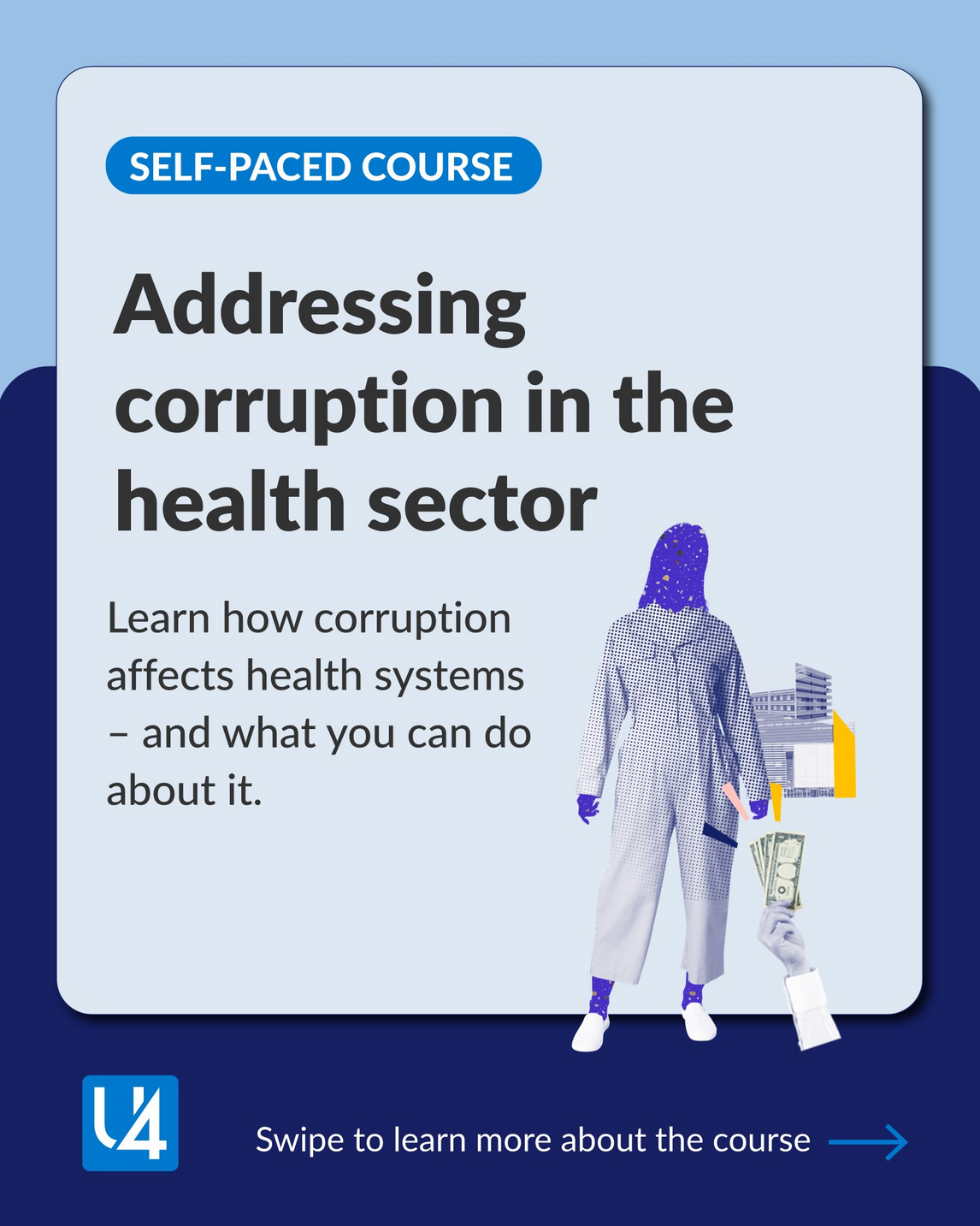 U4 Anti-Corruption Resource Centre is happy to announce the launch of our new online course: Addressing corruption in the health sector